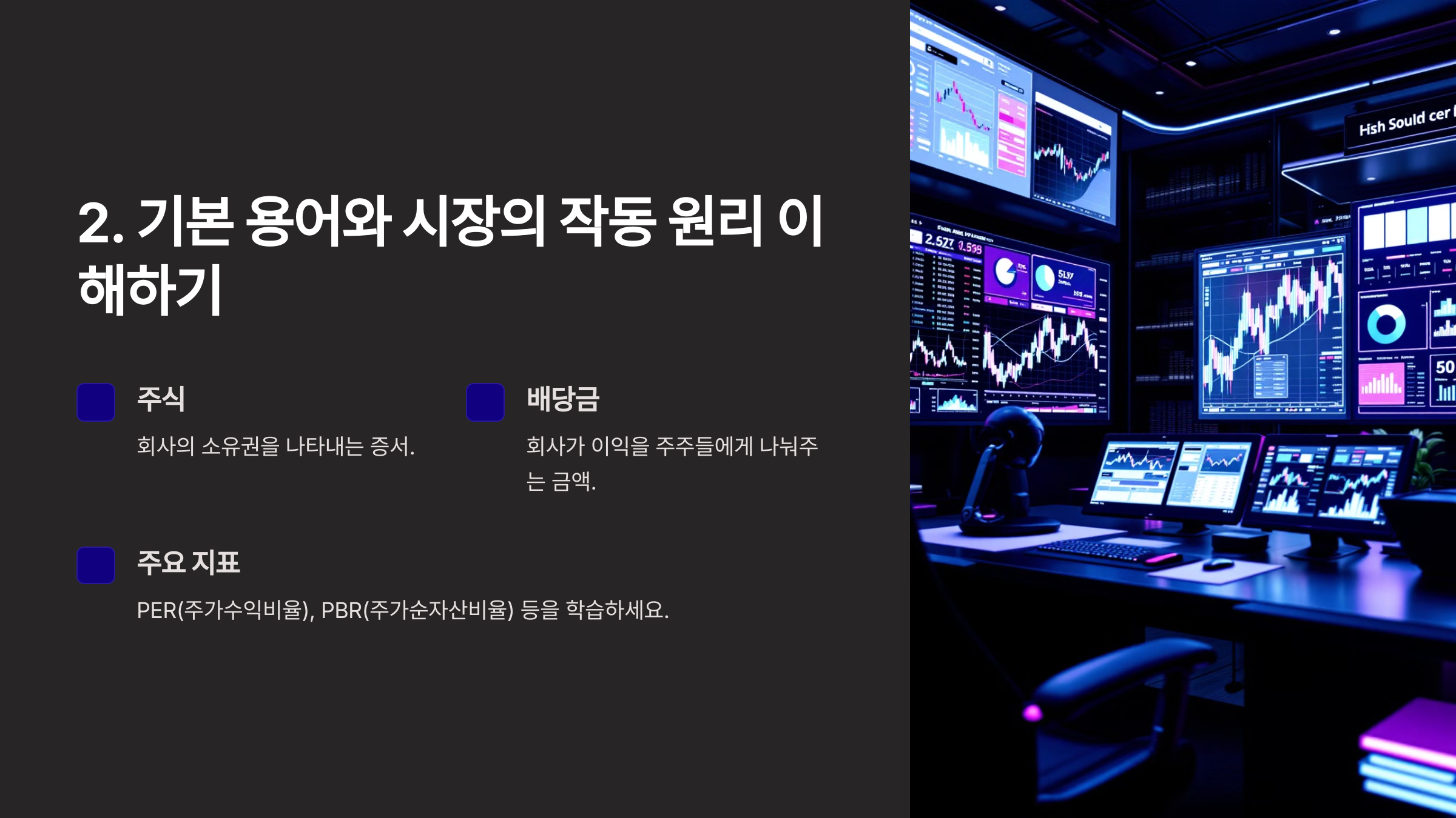 PER(주가수익비율), PBR(주가순자산비율) 등 주요 지표를 학습하세요.