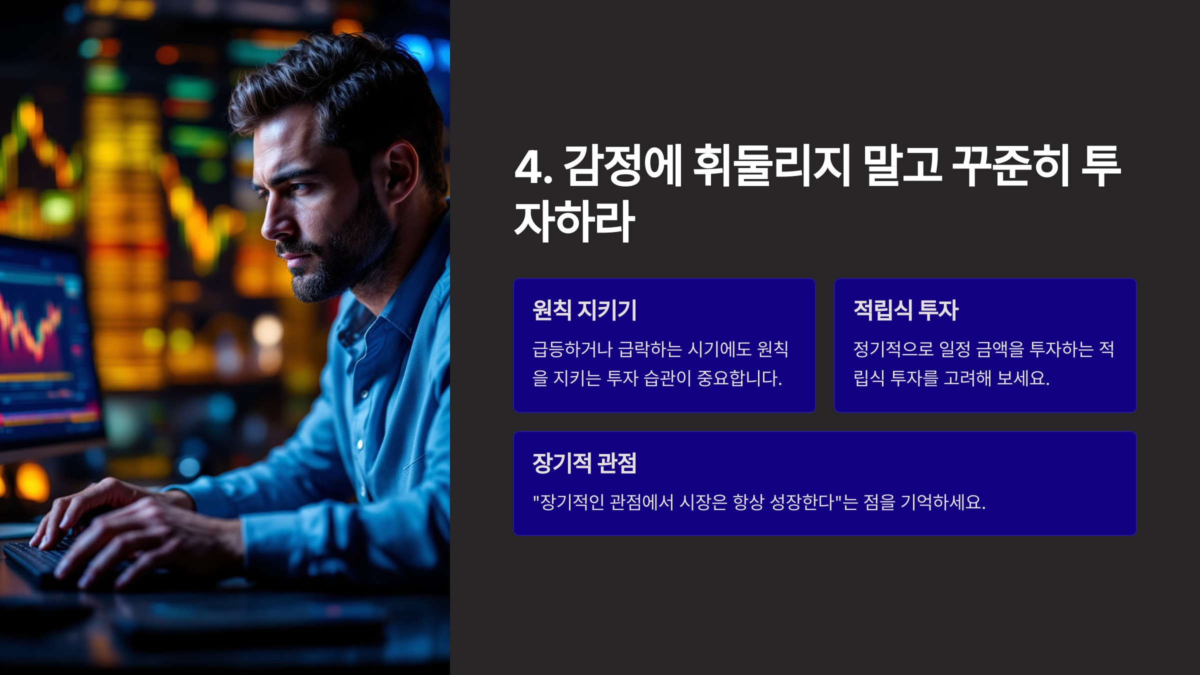 4. 감정에 휘둘리지 말고 꾸준히 투자하라 🕰️